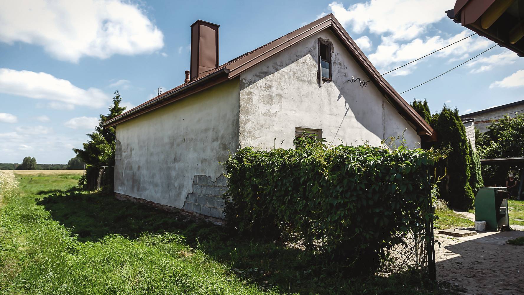 Dom, w którym na co dzień przebywają pani Helena i Michał, stoi w jednym podwórku z innym, w którym mieszka syn kobiety Grzegorz, wychowujący trójkę dzieci. Budynek ma ciekawą historię. - Postawiłam go z mężem, własnymi siłami. Będąc w ciąży, nosiłam beton, cegły… - wspomina kobieta, dodając, że budulec był słabej jakości ze względu na problemy z dostępnością materiałów.