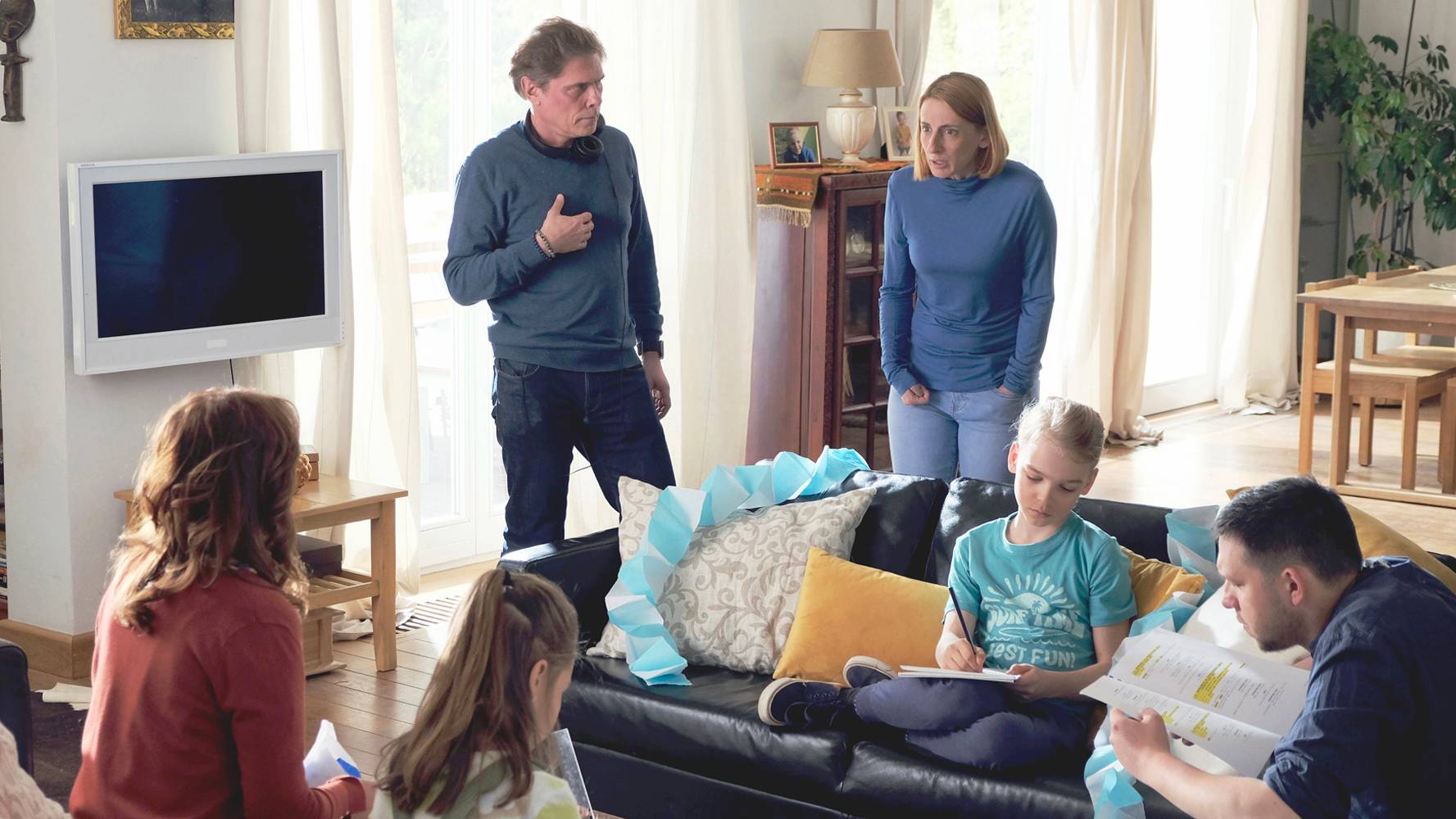 Reżyser Marcin Ziębiński omawia szczegóły sceny w domu Sobczaków i choć fabuła serialu przyzwyczaiła nas do negatywnych emocji, na zdjęciu z planu panuje zupełnie inny klimat: skupienie, ale też spokój oraz lekkość.