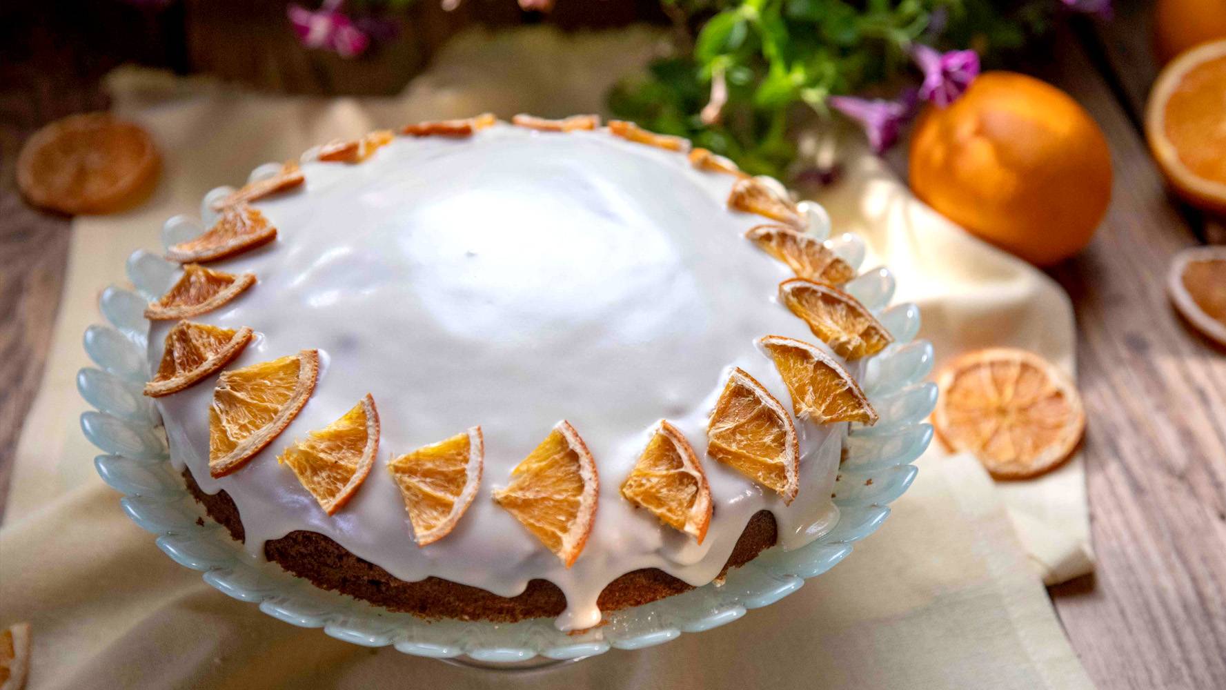 Na deser jest wspomniane na początku ciasto pomarańczowe, pokryte lukrem na soku z pomarańczy, udekorowane suszonymi cytrusami.