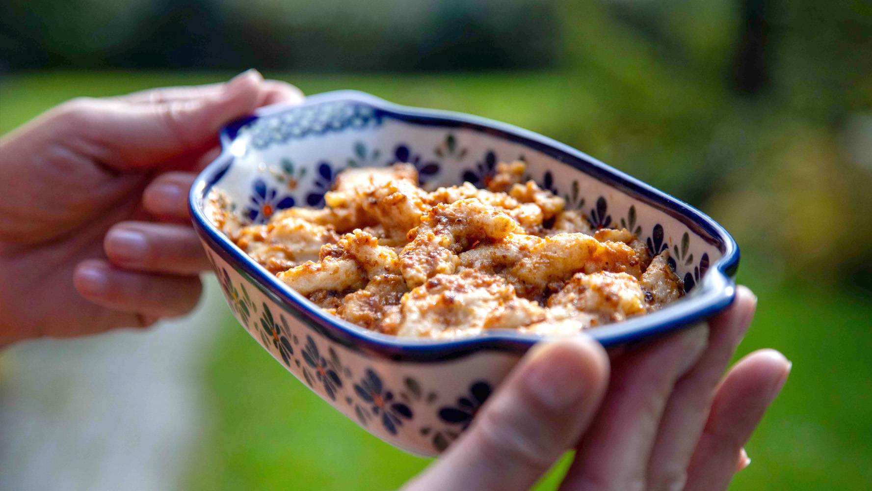 Ewa Wachowicz pokazuje też jak błyskawicznie zrobić jedno z jej ulubionych dań z dzieciństwa i to w plenerze, na jej wysłużonej kuchence angielce. Wystarczy kilka chwil, aby podać kluski kładzione okraszone smażoną śmietaną.
