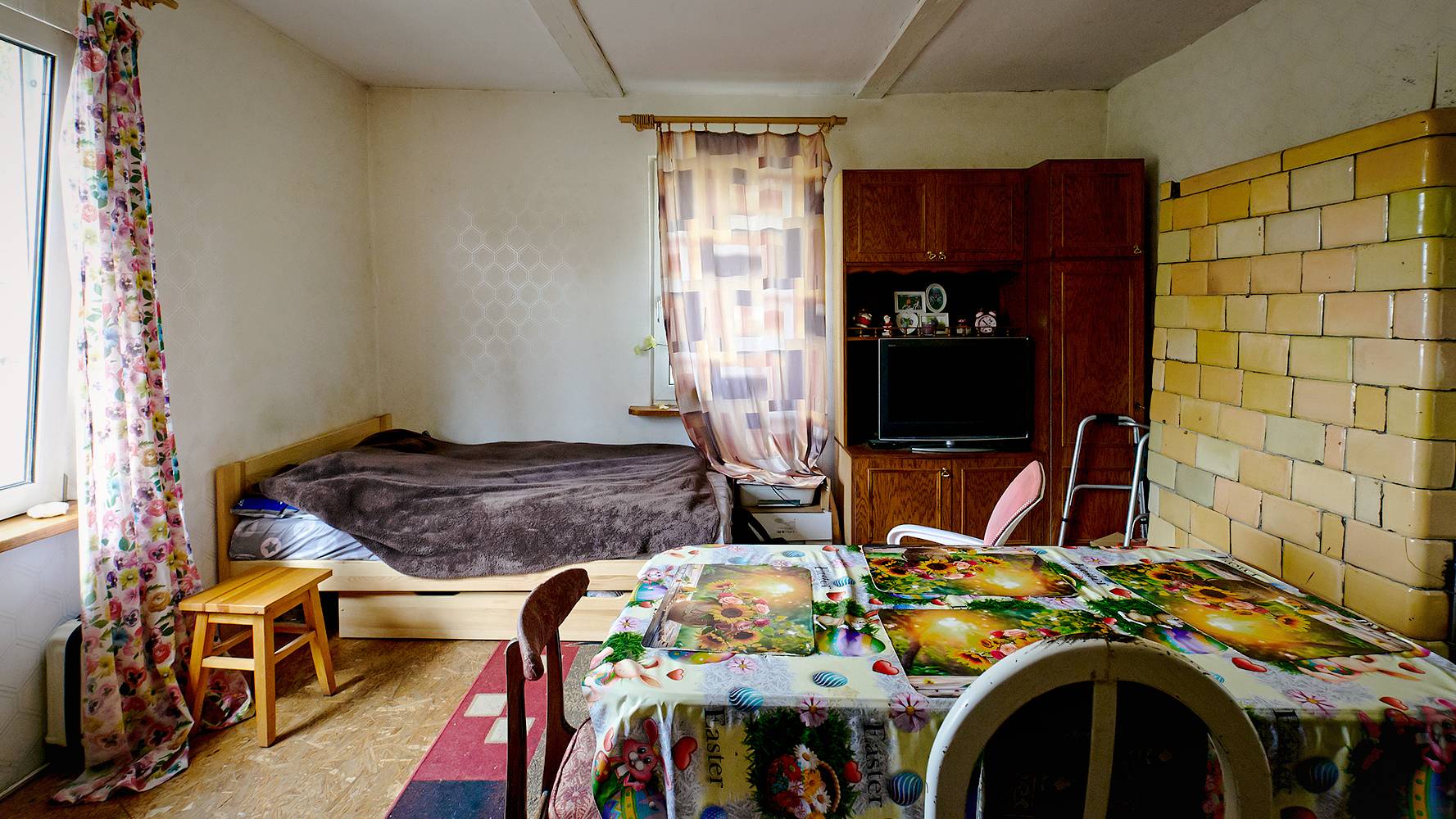 Pomimo nowego dachu, stary drewniany dom jest w katastrofalnym stanie. Jedynymi źródłami ciepła są dwa piece kaflowe, a część budynku w ogóle nie jest ogrzewana. Nie ma łazienki, a woda została doprowadzona dopiero niedawno. Rodzina musi myć się w miskach. Jesienią i zimą wszystkim doskwiera chłód, bo ściany są dziurawe, a okna nieszczelne. Cała trójka mieszka w jednym pokoju. Prowadząca nie ukrywa swojego przerażenia na początku oglądania wnętrz.
