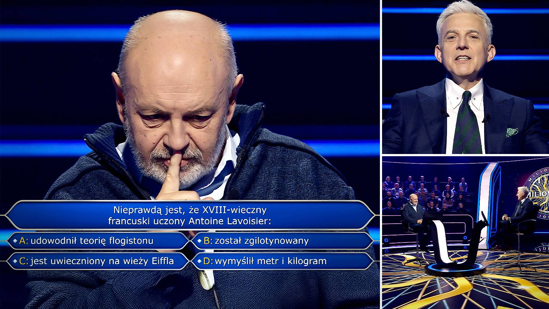 Podchwytliwa konstrukcja nie zwiodła gracza, bo znał postać francuskiego naukowca na tyle, aby wykluczyć przynajmniej część wariantów. W dodatku wiedział, czym jest flogiston: błędną teorią, której nie dało się udowodnić. Wybrał odpowiedź A, co przyniosło mu 10 tysięcy złotych.