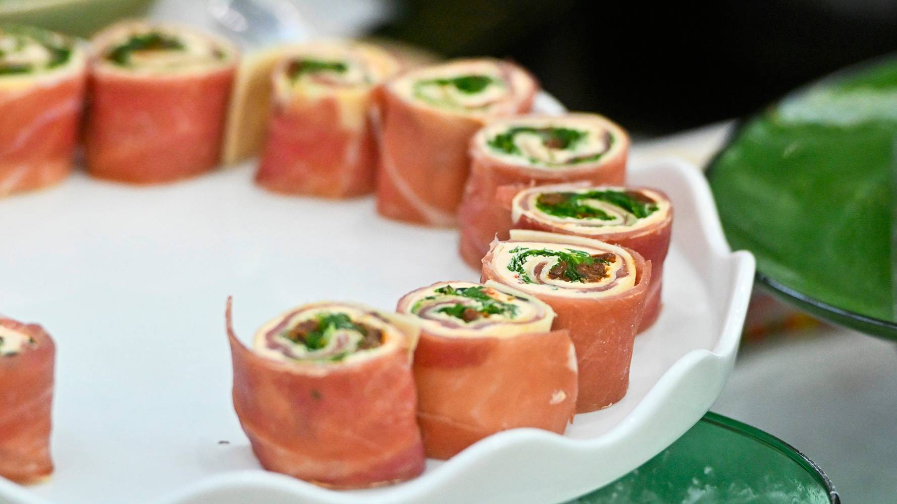 Roladki z tortilli to jeden z tych hitów, które zawsze robią wrażenie. W tej wersji pojawia się włoska szynka, kremowy serek i orzeźwiająca sałatka z rukoli. Całość jest jednocześnie delikatna, lekko kwaskowa i przyjemnie chrupiąca - idealna do podjadania w trakcie sylwestrowej zabawy.