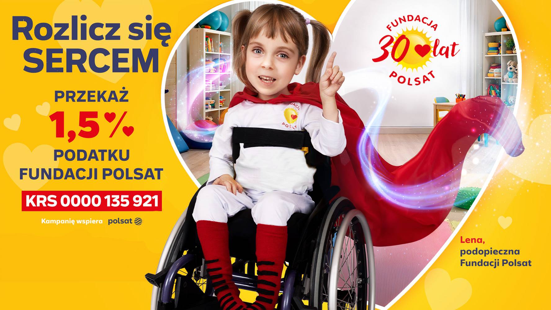 Każdy z Państwa podczas składania deklaracji podatkowej PIT za rok 2025 może wybrać Organizację Pożytku Publicznego, której przekaże 1,5% swojego podatku. Z całego serca zachęcamy do wsparcia Fundacji Polsat (numer KRS 0000 135 921). Całość zebranych środków zostanie przeznaczona na leczenie i rehabilitację naszych podopiecznych. Rozlicz się sercem. To nic nie kosztuje, a dla Leny, Antosia i tysięcy innych dzieci to realna szansa na lepsze życie. Dziękujemy, że razem możemy robić rzeczy naprawdę ważne.