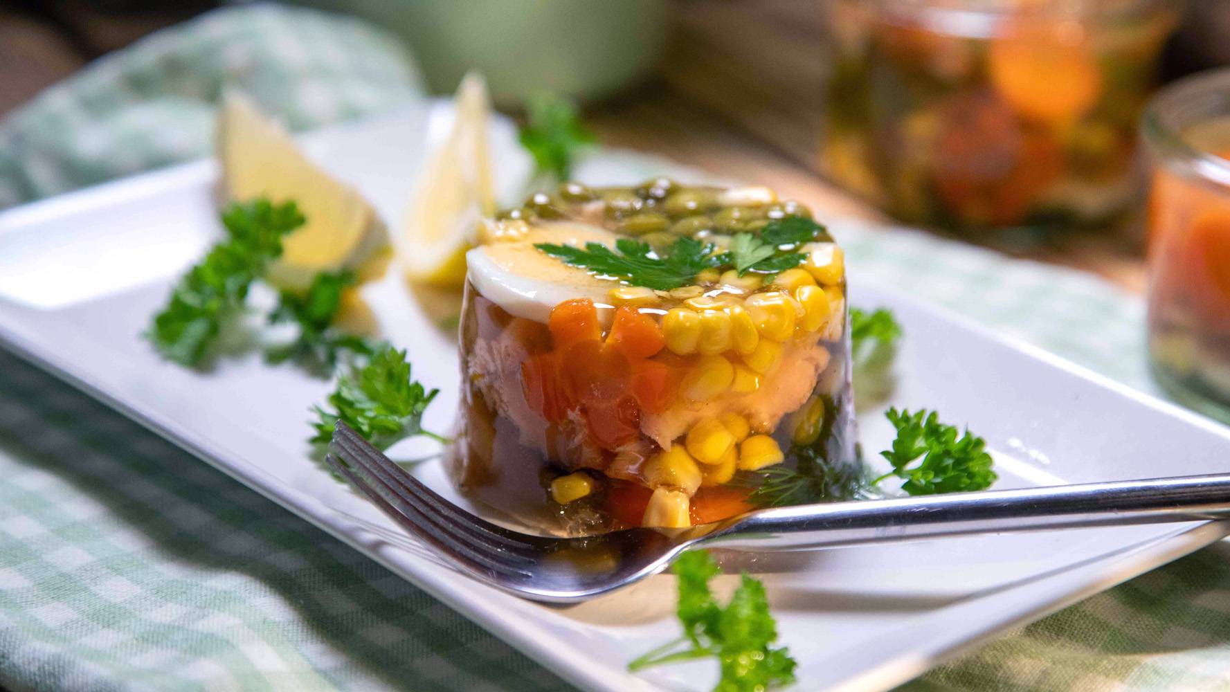 Te niewielkie galarety z mięsem i warzywami przed laty były jednymi z bardziej popularnych zakąsek na wszelkiego rodzaju uroczystościach rodzinnych. Najczęściej robiono je z drobiu lub wieprzowiny, ale zdarzały się też wersje rybne. Ewa wybiera tę ostatnią opcję i robi tymbaliki z wędzonym pstrągiem - rzecz jasna z pobliskiej hodowli.