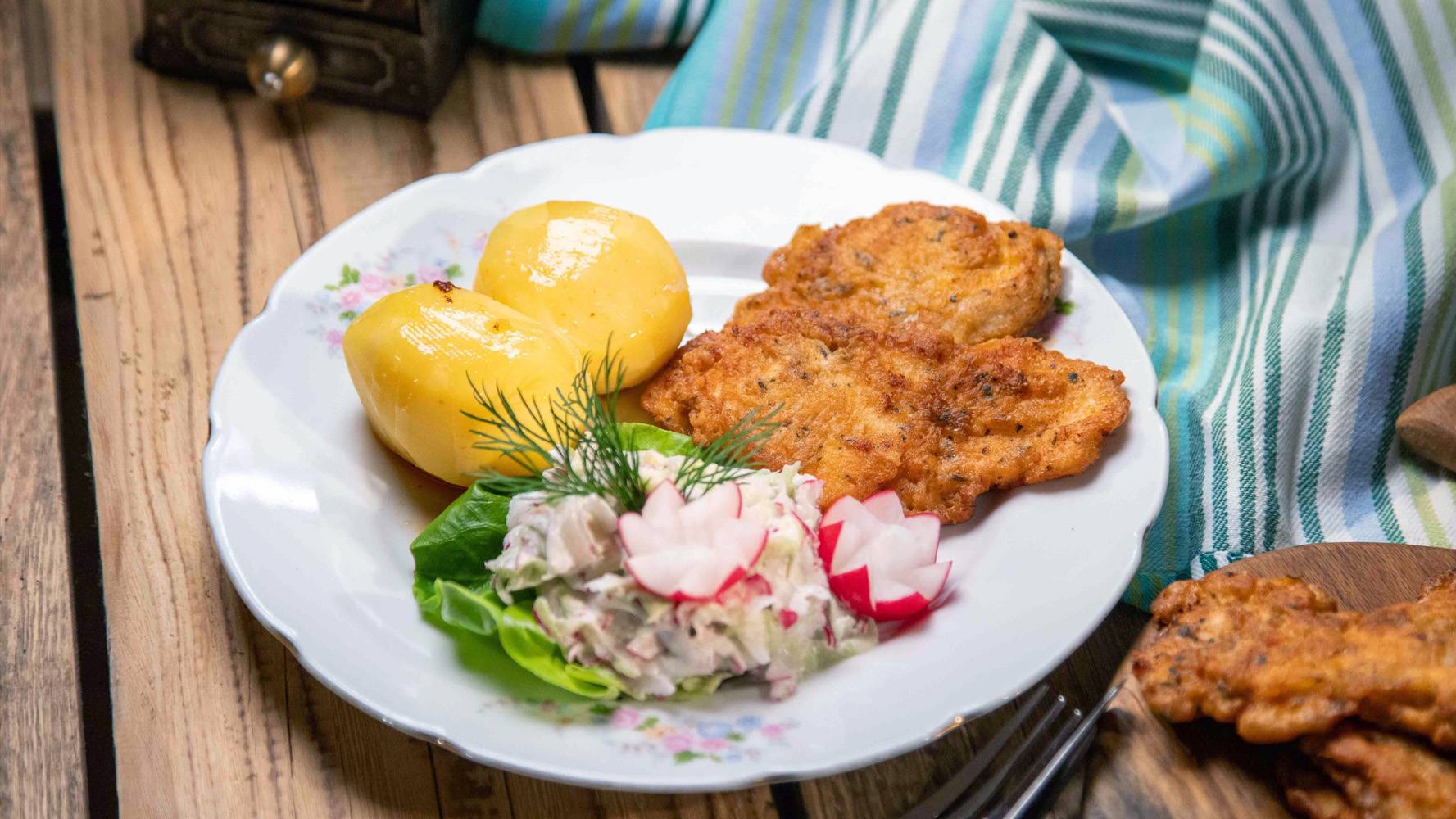 Na danie główne są pamiętające czasy PRL-u kotleciki. Nazwa potrawy pochodzi od charakterystycznego dźwięku podczas smażenia. Kotlety robione są z filetów z piersi kurczaka marynowanych w żółtkach wymieszanych z jogurtem, a panierowane w mące ziemniaczanej. Danie wywodzi się ze wschodnich rejonów Polski, w latach 60. i 70. było popularne w barach mlecznych na terenie całego kraju.