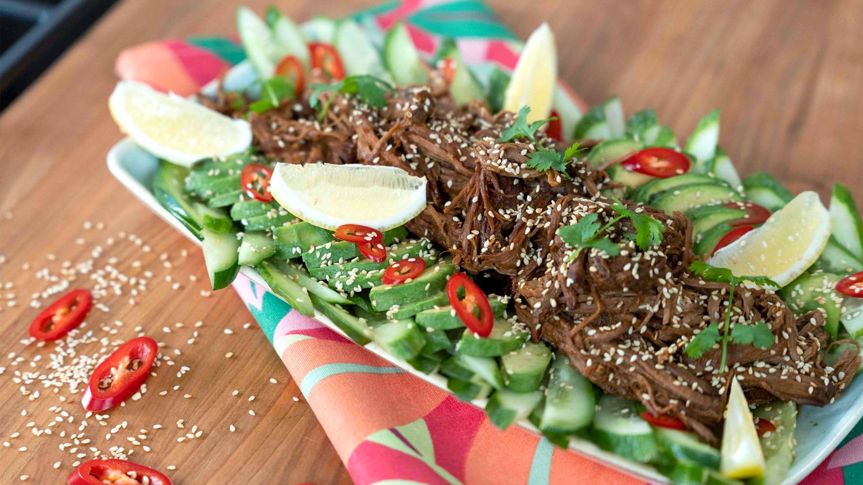 Na danie główne jest długo pieczona, orientalna wołowina miso ginger orange - zamarynowana w paście sojowej, imbirze i soku z pomarańczy.
